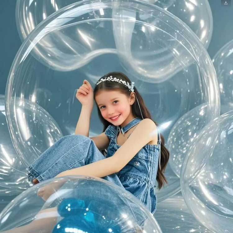 48-tums runda klara Bobo-ballonger kan anpassa sig till olika miljöer. När de är ihopkopplade med 10 LED-ljusslingor och fyllda med helium kan de skapa en ljuseffekt. Dessa ballonger kan användas för kommersiella utställningar för att uppnå precisionsmarknadsföring; de kan också användas för att fylla barnkalas med färgglada skum- eller fjäderblad. ett bröllop nyligen användes 100 skräddarsydda 48-tums runda genomskinliga bubbelballonger och vann mycket beröm.