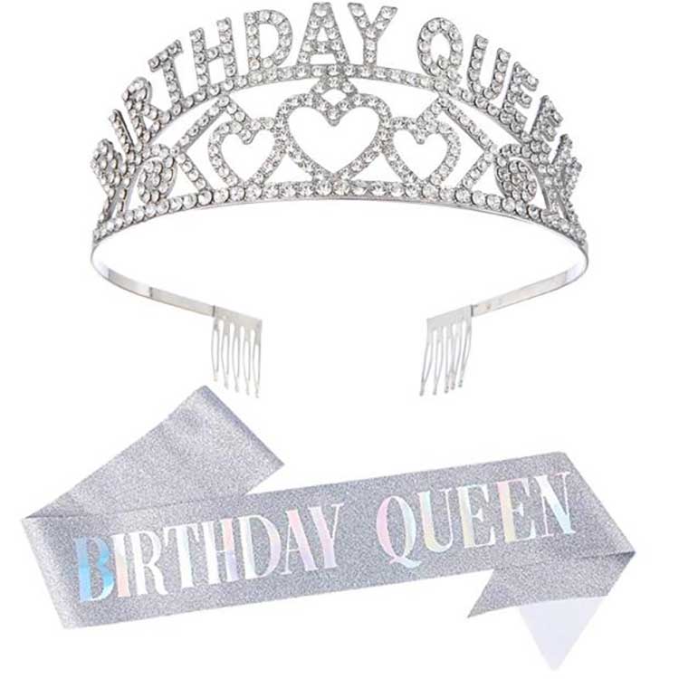 Birthday Queen Crown är ett huvudstycke som kommer som ett set med axelremmen. Kronans huvuddel är gjord av legering, vilket säkerställer att den inte bleknar eller skadas. Vi har använt en inläggningsteknik för att fästa diamanterna på legeringsramen, vilket förhindrar att de lätt faller av. Denna perfekta produktkvalitet garanterar att du kan fortsätta att använda den vid framtida födelsedagsevenemang.