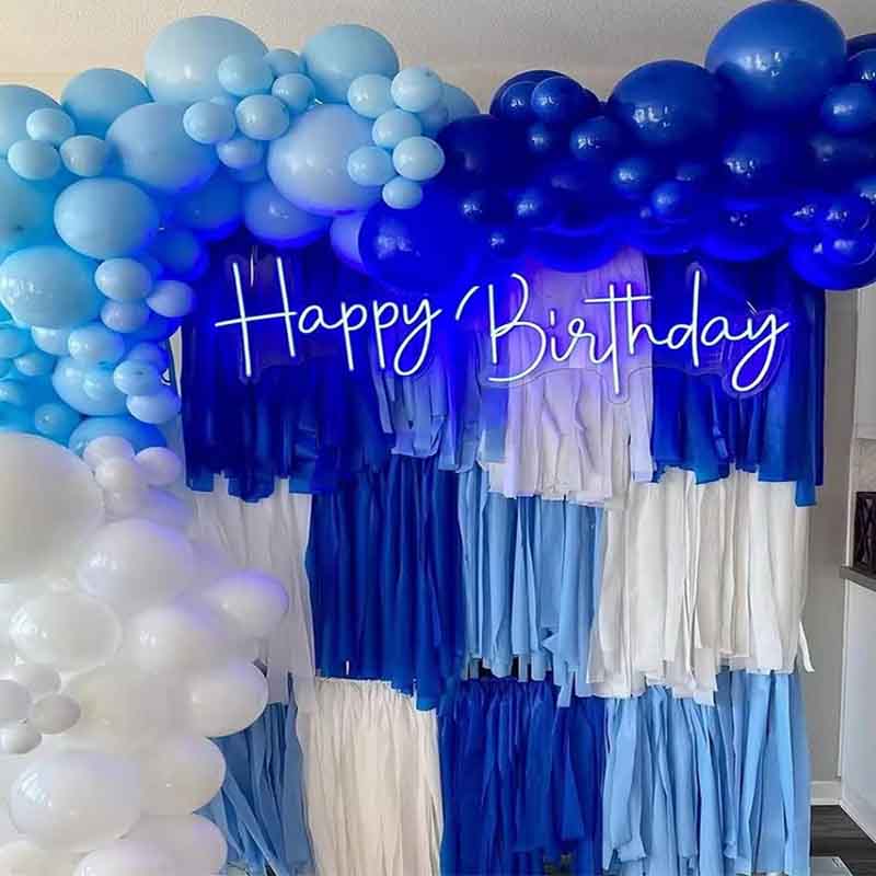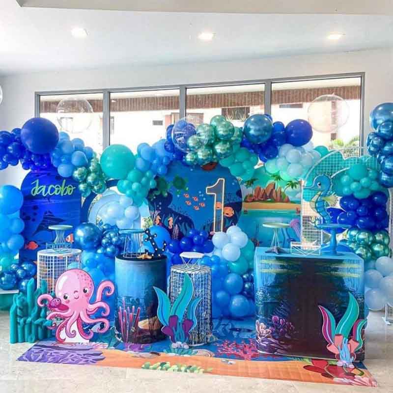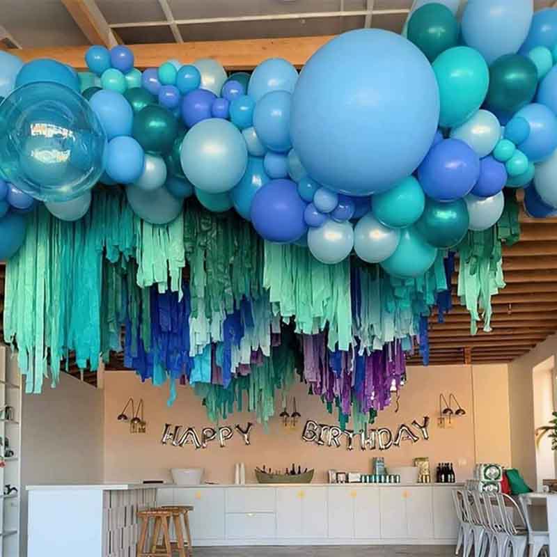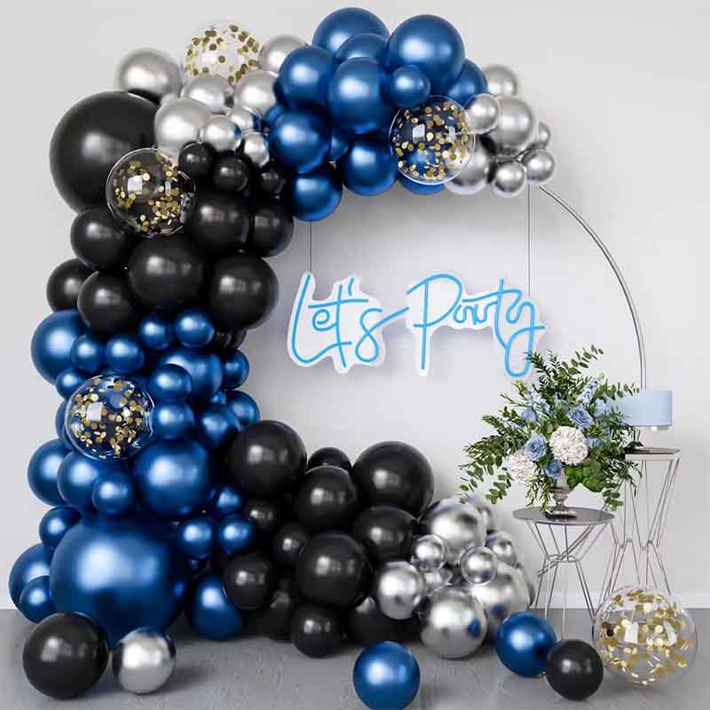 Blue Balloon Garland Arch Kit erbjuder en mängd blå toner, inklusive ljusblå, mörkblå, kungblå och himmelblå, för att tillgodose behoven i olika scener.