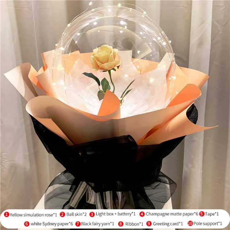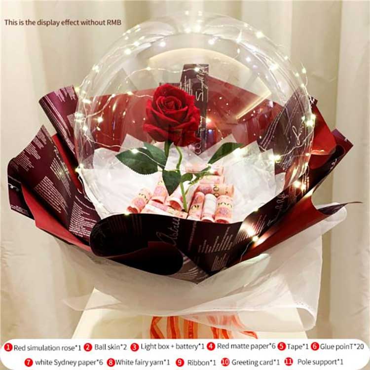 BOBO-ballonger kan behålla sin form i ungefär en månad efter uppblåsning. De konstgjorda rosorna är slitstarka och kan användas som möbeldekorationer. Strängljusen är avtagbara och kan användas för rumsbelysning. Oavsett om du driver en fysisk blomsteraffär, presentbutik eller smyckesbutik, eller till och med ett stall i en park eller lekplats, är BOBO Balloon Rose Sets utmärkta bästsäljande produkter. De upplysta rosorna är mycket attraktiva för kunderna, erbjuder stort värde för pengarna och ger många vackra minnen och känslomässigt värde, vilket gör dem till ditt bästa val.