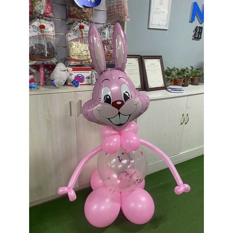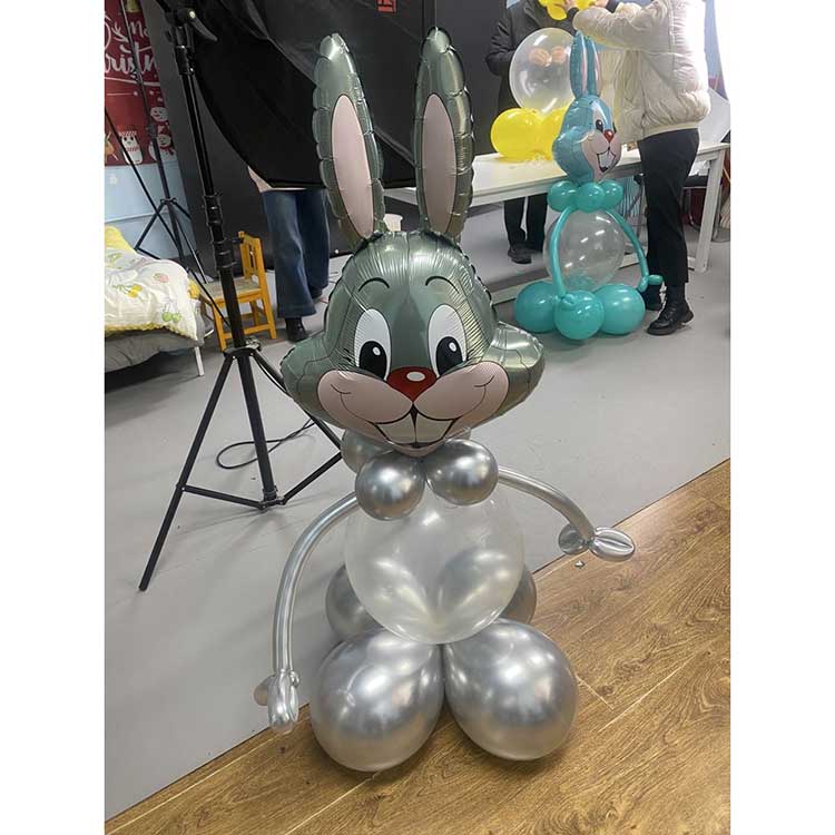 Bugs Bunny Folieballong som används för aktiviteter med påsktema. Bugs Bunnys långa öron, lekfulla leende och livliga ögon, tillsammans med deras livfulla och rika färger, kommer att locka barns uppmärksamhet och förstärka den festliga atmosfären. Bugs Bunny Folie Ballong Produkt Set. Att kombinera folieballonger och latexballonger skapar en 3D-effekt som tänder en glad atmosfär. Bugs Bunny-ballongen finns i fyra färger: rosa, blå, grå och grön. Varje folieballong är ihopkopplad med en latexballong i samma färgschema. Produkterna är mycket hållbara. Folieballongerna använder en förtjockad förseglingsprocess, vilket gör att de kan hålla sig uppblåsta i 2-3 veckor. Latexballongerna är också mycket tjocka; en 12-tums ballong använder 2,8 g latex och kan hålla sig uppblåst i cirka 4 veckor. Alla material som används är barnsäkra, luktfria och fria från skadliga ämnen, vilket gör dem säkra för barn att hantera. Bugs Bunny folieballong är inte bara för påsk; de kan också användas som bordsdekorationer eller fotorekvisita för barns födelsedagar, vilket skapar ett roligt och lekfullt utrymme. De kan också ges som välkomstpresenter för en babys 100-dagarsfirande. Anpassning är tillgänglig; . Newshine som ballongtillverkare med många års erfarenhet av ballongproduktion. Vi kan möta alla dina kreativa behov.