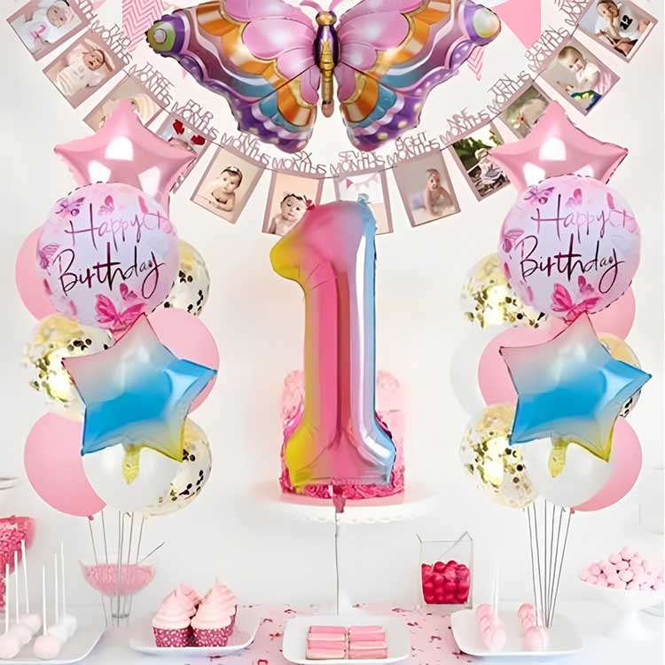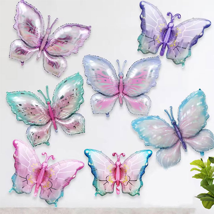 Butterfly Shape Foil Balloon är gjord av metalliskt foliematerial. Detta material ger inte bara ballongen en unik lyster och struktur, utan förbättrar också ballongens hållbarhet och tryckmotstånd avsevärt. De reflekterande egenskaperna hos folien gör ballongerna särskilt bländande under ljuset, vilket ökar den visuella effekten.
