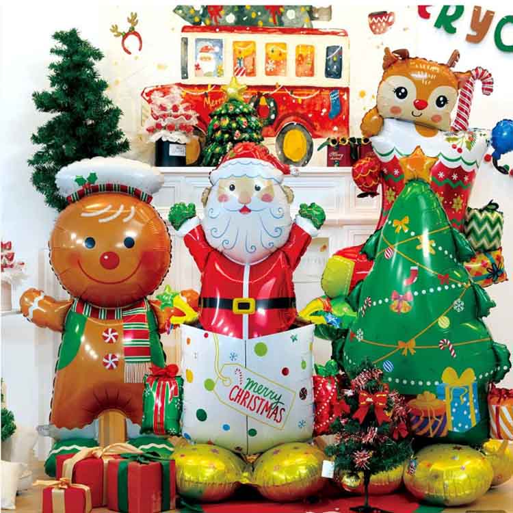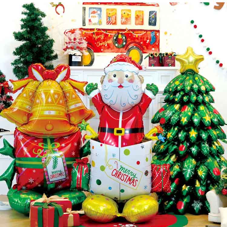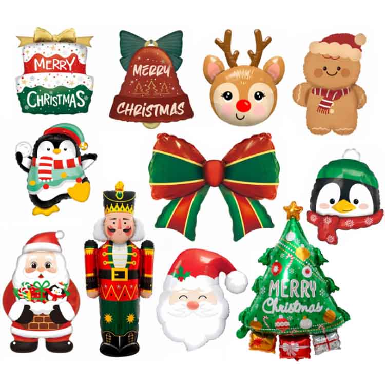 Julballonger av aluminiumfolie har julelement i sina mönster. Tillgängliga i klassiska former som jultomten, julgranar, snöflingor och klockor, dessa ballonger är prydda med "God Jul"-slogans. Färgerna innehåller julelement, i första hand med färger med jultema som rött, grönt, guld och silver, vilket skapar en festlig atmosfär. Finns i ett brett utbud av storlekar, från en mini 30 cm till en gigantisk 100 cm, de tillgodoser en mängd olika dekorativa scenarier och behov.
