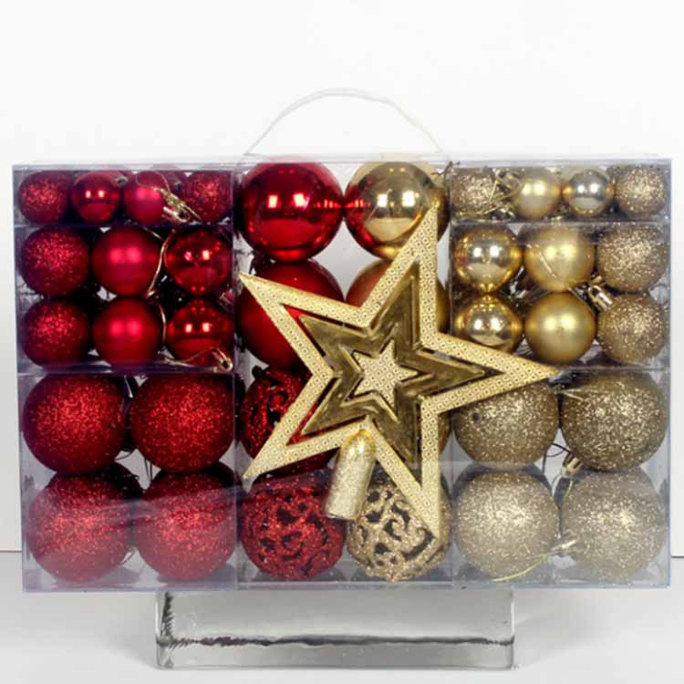 Julgransdekorationer Prydnadsbollar består av 101 olika dekorativa tillbehör. Den innehåller dekorativa bollar i olika storlekar och färger. Den kan hjälpa dig att till fullo stimulera barns entusiasm, utveckla deras fantasi och göra det möjligt för dem att skapa DIY-dekorationer, vilket gör att familjen kan få en minnesvärd jul. Tillbehören är gjorda av tjocka material som inte är lätta att skada, och de dekorativa bollarna har både matta och släta ytor. Även om materialet inte är så tungt och att det inte är så tjockt och julgrant är böjt. dess form kommer inte att påverkas. Det gör att allt blir vackrare och enklare.