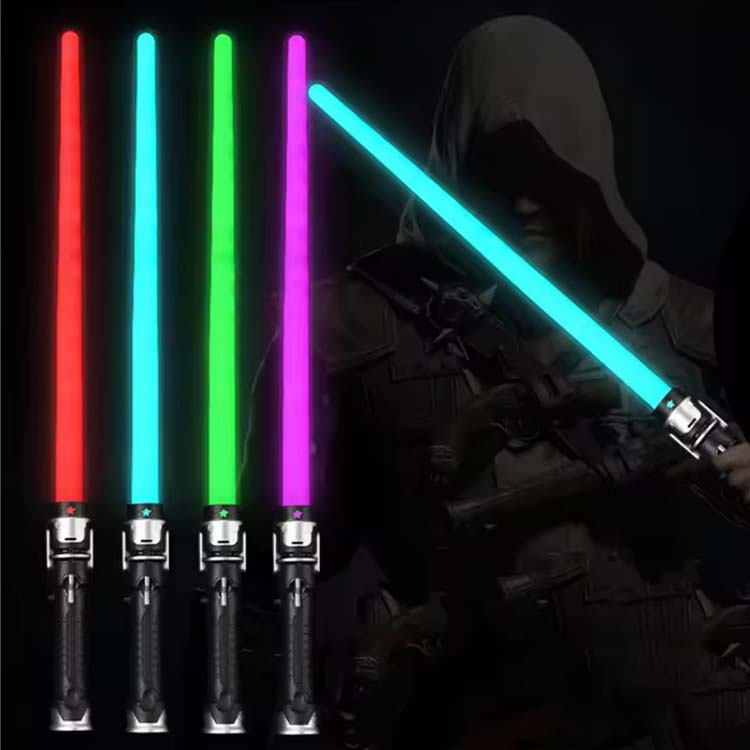 Vårt lyser upp glödande lasersvärd med ett lätt att greppa designhandtag. Det har också LED -lätta blinkande läge. Färgen och ljudet är rörelsekänsliga.