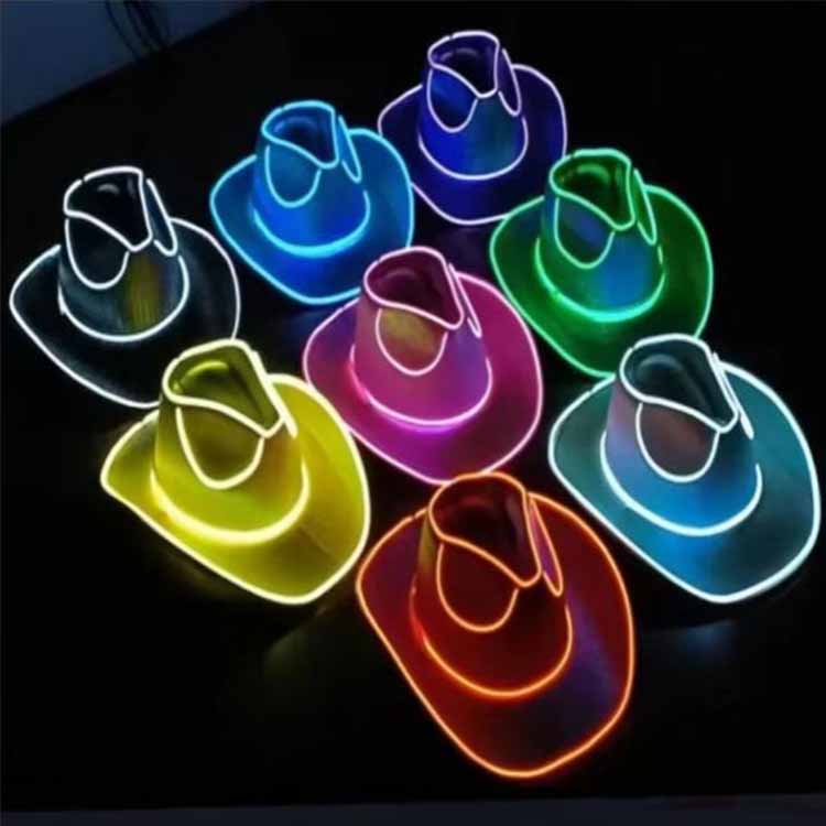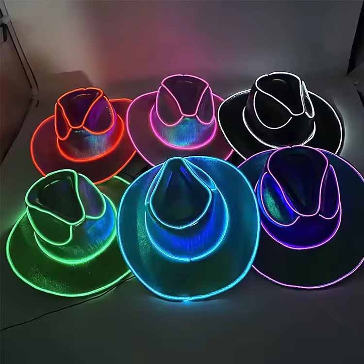 Denna led fluorescerande färgglada hatt är lätt att använda och kan enkelt installeras på bara 5 minuter. Sätt bara i två AA-batterier, slå på strömbrytaren och njut av det roliga med den upplysta cowboyhatten.