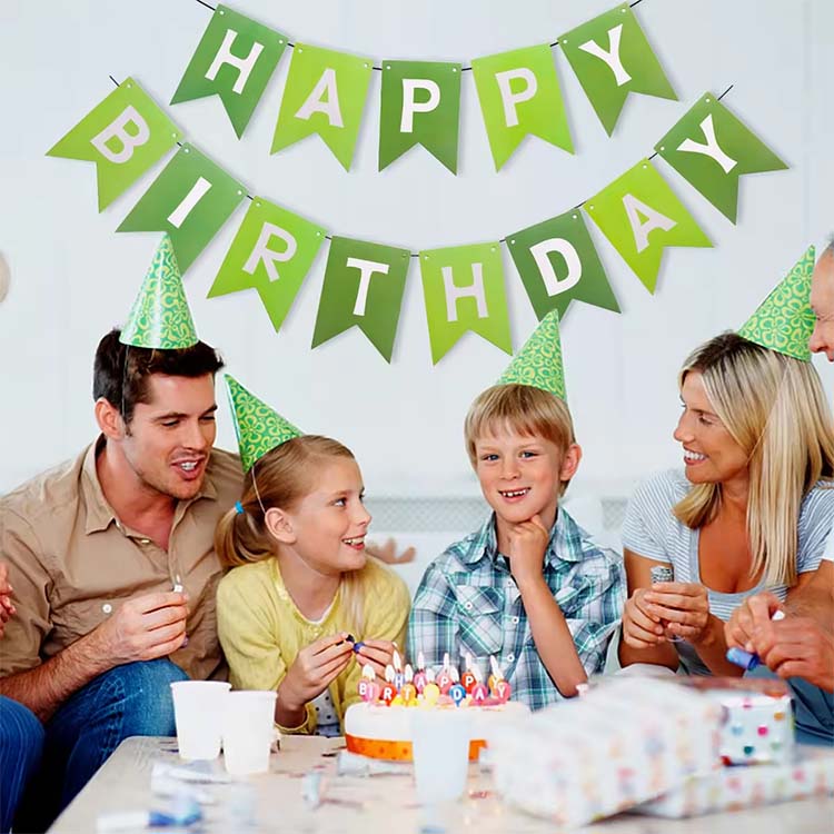 DeGrattis på födelsedagen flaggaär en bannerprodukt som används för dekoration och skapa en atmosfär, vanligtvis tryckt med orden "lycklig födelsedag" eller personligt innehåll. Det har många mönster, inklusive olika teman som examen säsong, mors dag, fars dag och måndag. Flaggan finns också på olika språk, till exempel spanska och engelska. Det kan väl förbättra atmosfären och dekorera partiet.