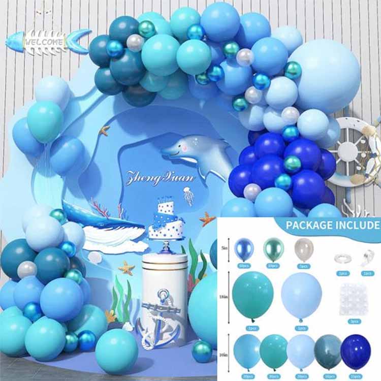 1. Grundfärgsballonger: Djupt havsblått, ljust havsblått, vitt och transparent (simulerar havsvatten, vågor och bubblor)