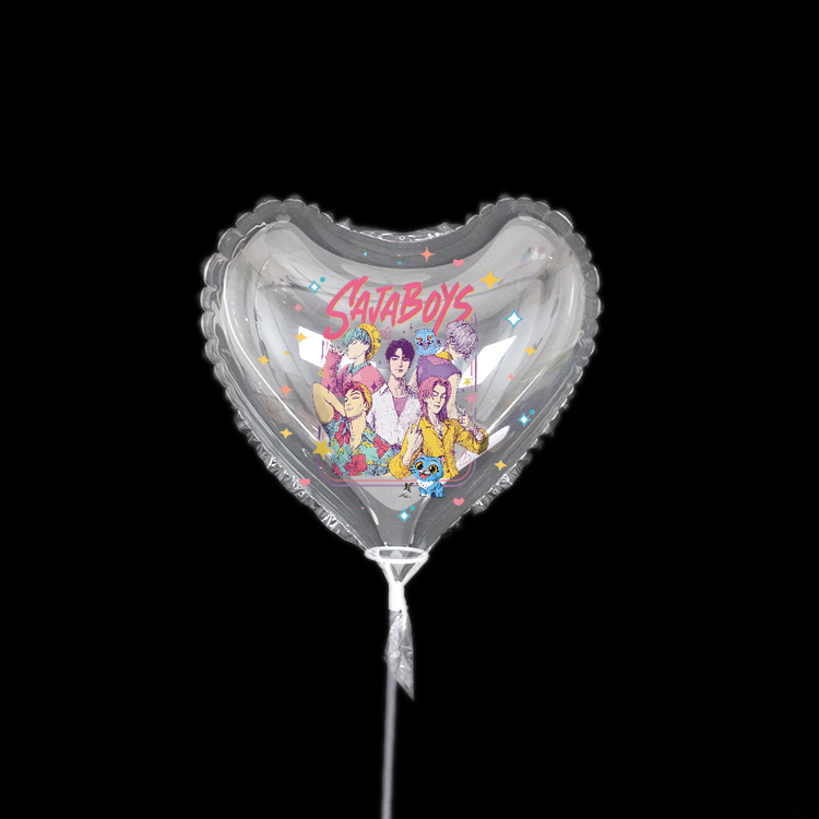 Tryckta Kpop-boboballonger (främst genomskinliga sfärer, men vissa är oregelbundet formade som hjärtan och stjärnor) varierar i allmänhet i diameter från 18 till 36 tum, lämpliga för olika typer av handhållna stödartiklar och scendekorationer. Utskriftsområdet kontrolleras exakt i mitten av ballongen (för att förhindra sträckning och deformation under uppblåsning), med en 30-50% sträcktillåtelse för att säkerställa att mönstret är komplett och klart efter uppblåsning.