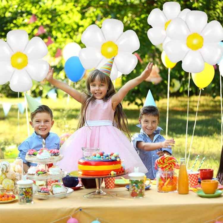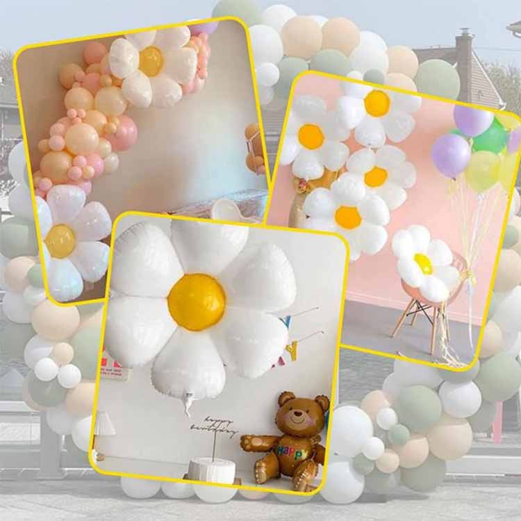 Födelsedagsfest: Oavsett om det är en födelsedag för barn eller vuxna, kan sex-petal daisy folie ballonger ge en lycklig och varm atmosfär till festen. Taket, väggarna, matbordet och andra platser på festplatsen kan också göra ballonger till ballongbågar, ballongkolonner och andra former, eller låta barn ta bilder med ballonger.