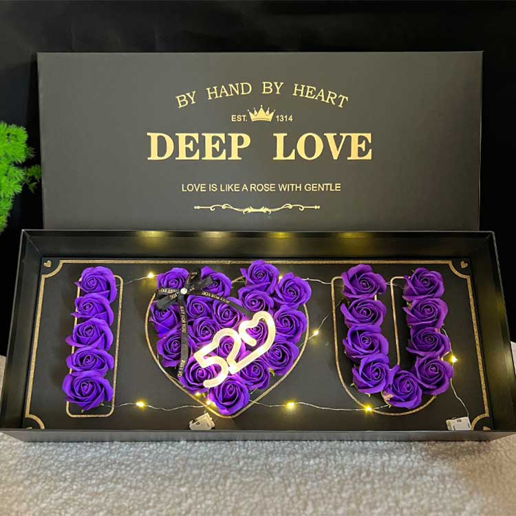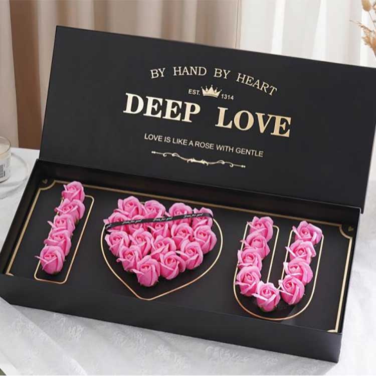 Tvålroshuvudens blomlåda mäter 61cm*26cm*10cm. Denna storlek kan fullt ut rymma ett tillräckligt antal tvålblommor, vilket skapar en utsökt visuell effekt, samtidigt som den underlättar efterföljande lagring och transport. Oavsett om det är för personligt köp som gåva eller för företags bulkköp som gåva, kan det enkelt tillgodose behoven för både personligt och företagsbruk.