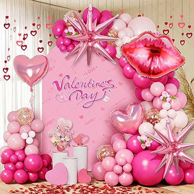 Strikt kvalitetskontroll: Varje ballong genomgår en rigorös produktionsinspektion för att säkerställa enhetlig tjocklek (förhindrar sprickbildning), konsekvent uppblåsningsprestanda och en slät, glansig yta. Vi väljer noggrant material för våra Alla hjärtans dag-ballonggirlander, och väljer hållbara och miljövänliga material för att säkerställa att ballongkransarna förblir uppblåsta under längre perioder.